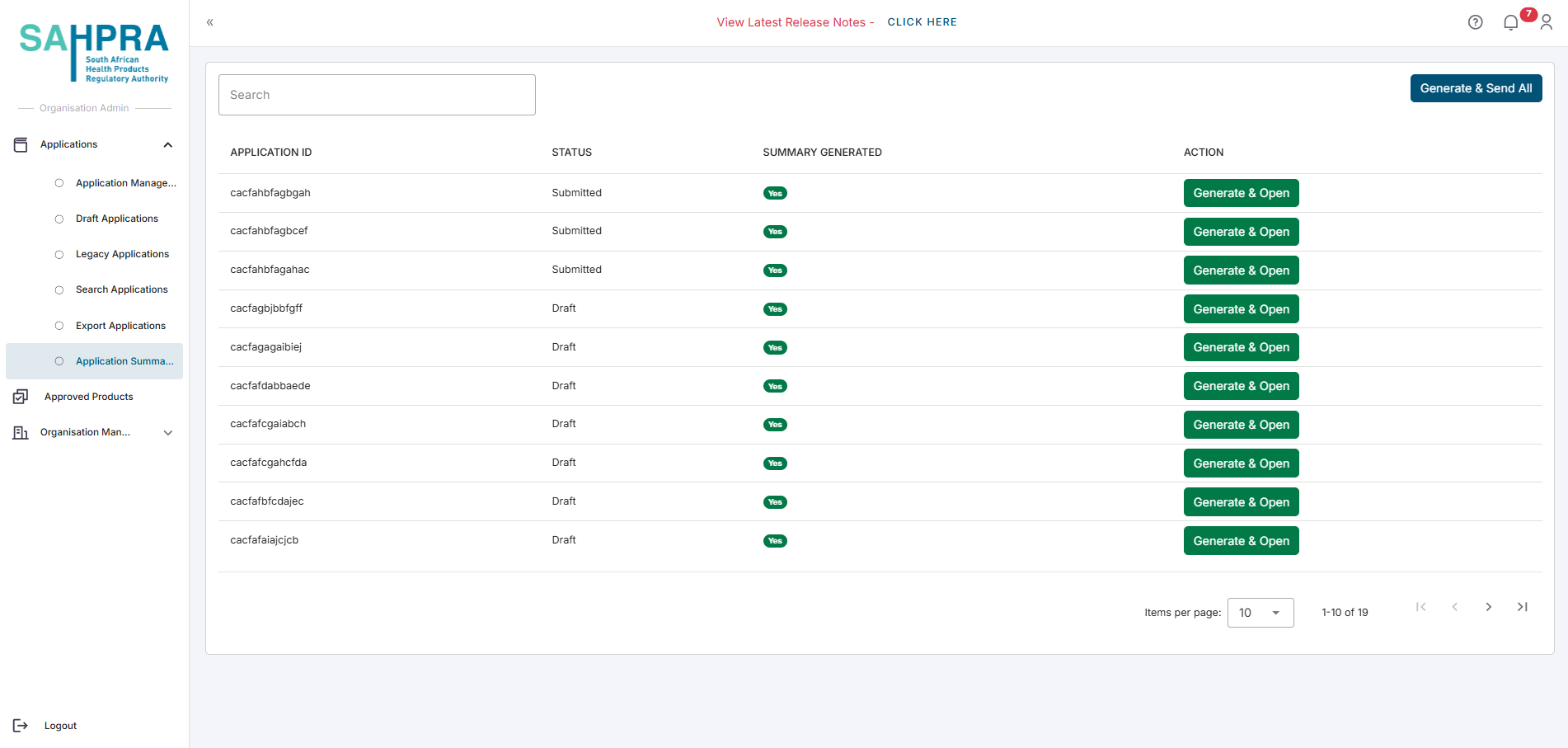 - Note: Please be patient and wait on this page after clicking on this button, as it takes up to 5 minutes to generate all the summaries if you have a lot of applications