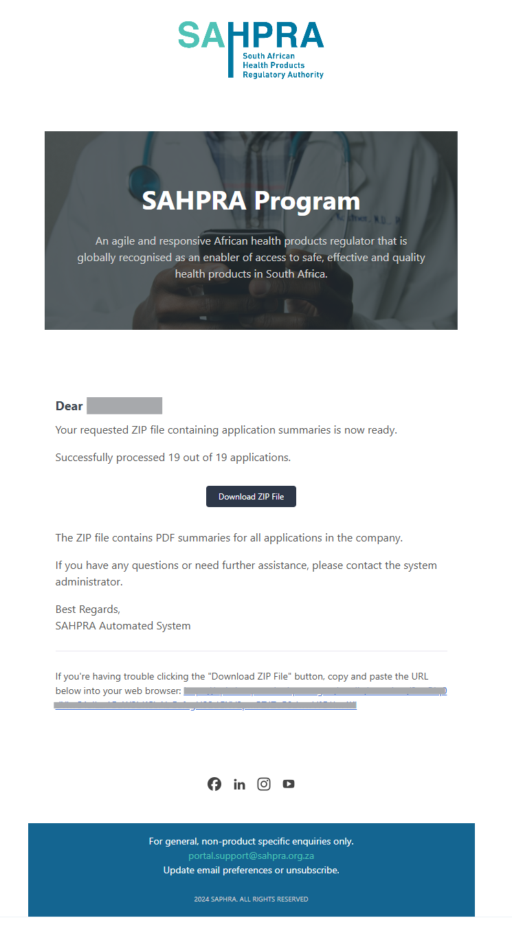 - An Email will be sent to you with a zip file containing all your summaries, which you can download