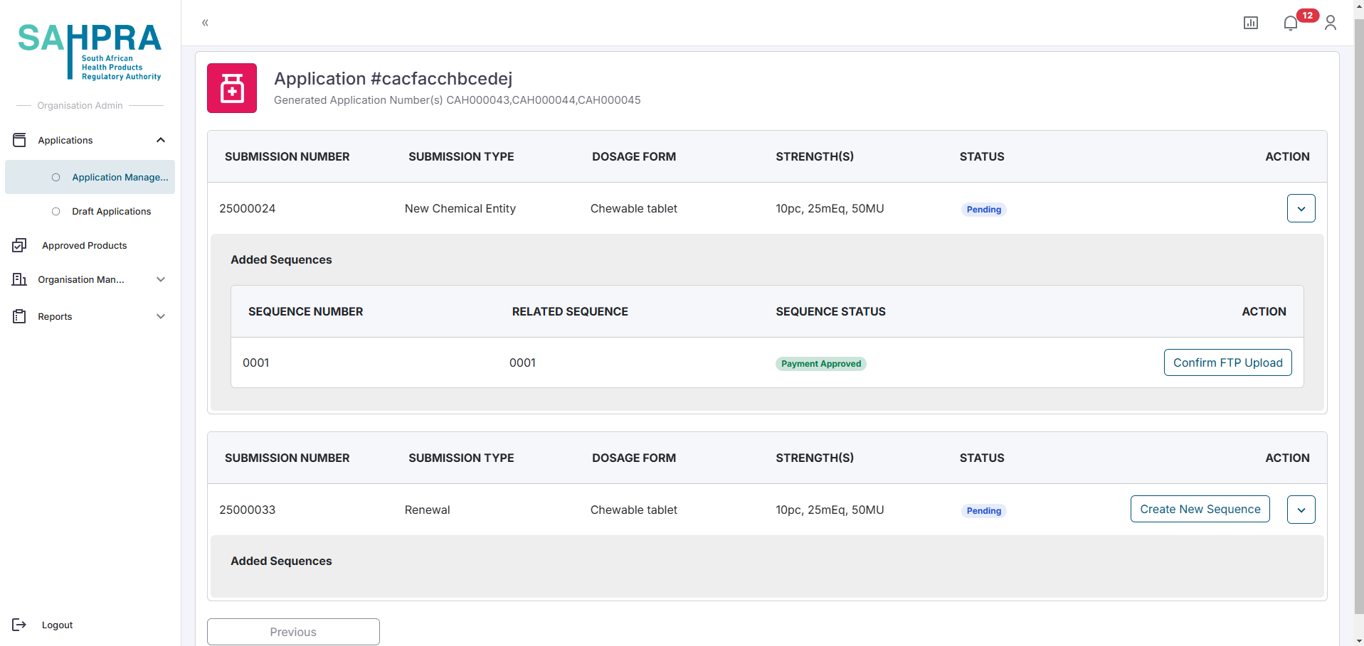 Once you are satisfied with the details and clicking the “Next” button a submission will be created, a sequence can be created, paid and submitted (Process for submission and sequence creation are described in detail in the “Creating a New Health Product Application” here). Once the application is approved the expiry date will be set to the applicable new expiry date.