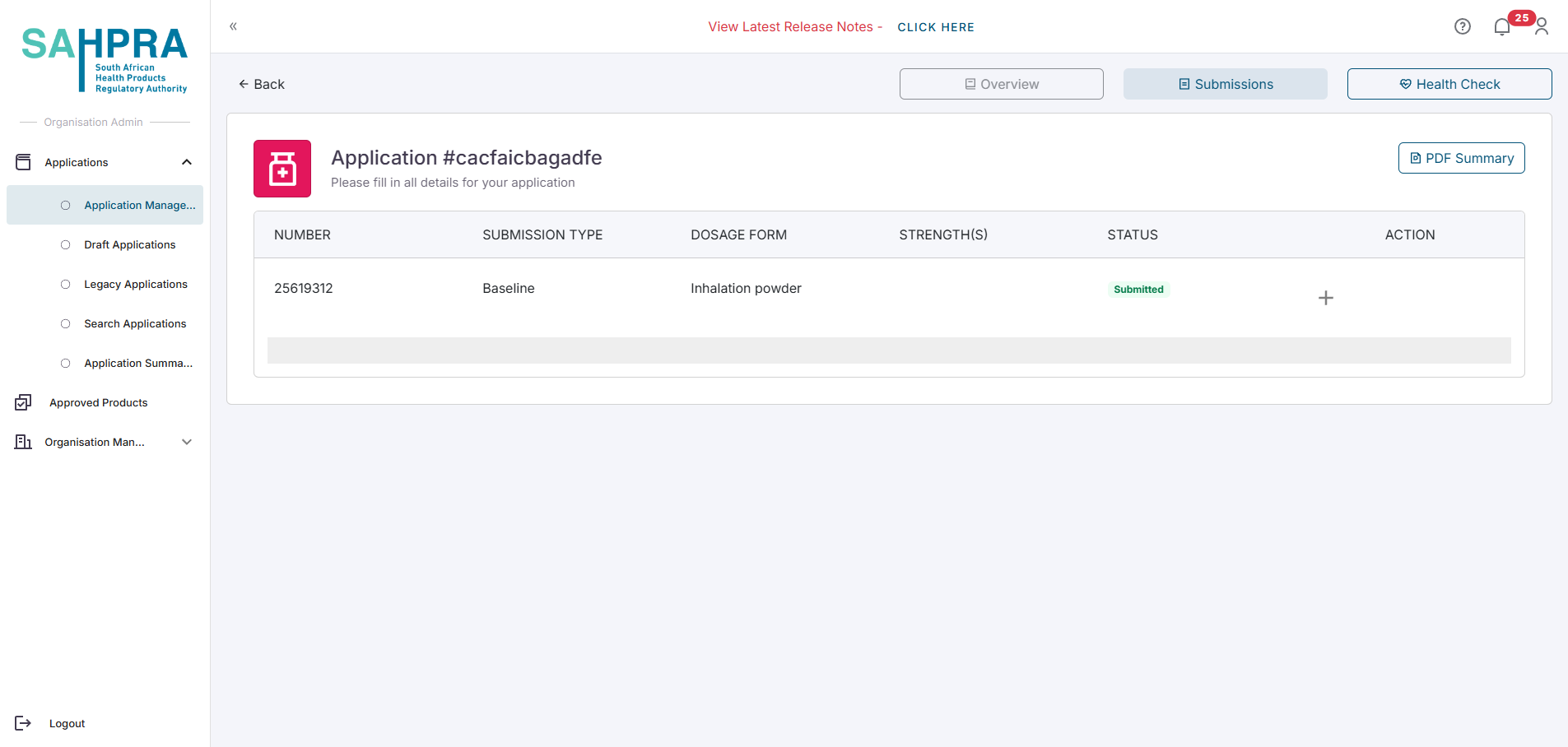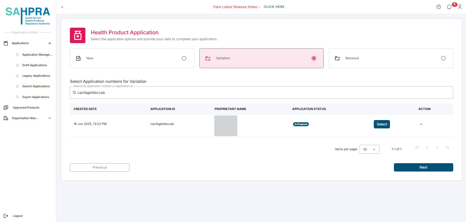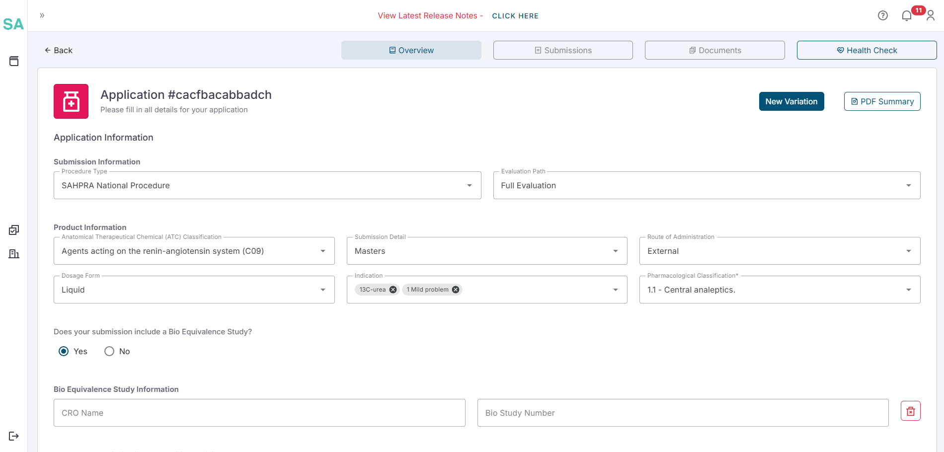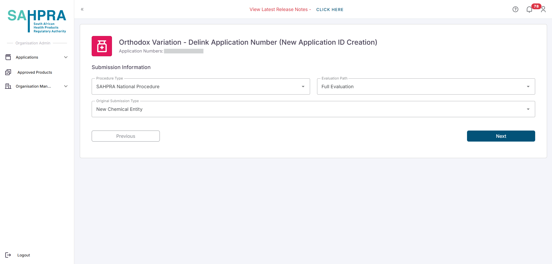 Once the variation submission has been reviewed and approved, the selected strength will be unlinked from the application and a new application ID will be created.